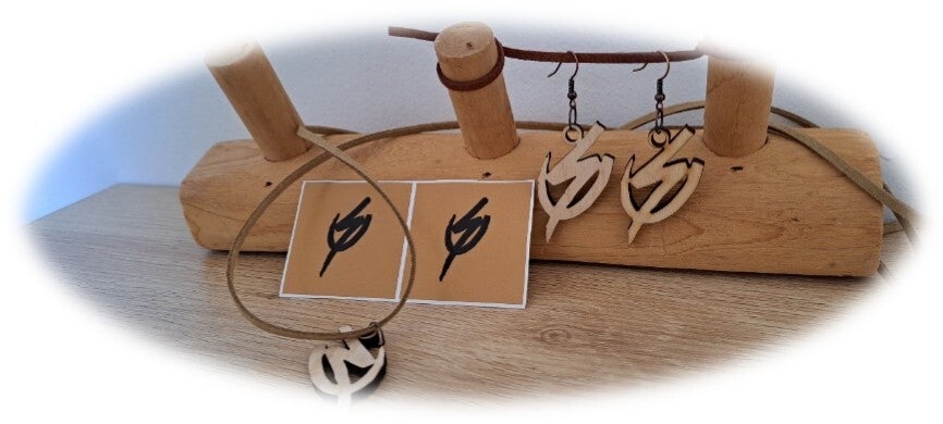 Niet iedereen draagt oorbellen uiteraard. Voor iedereen die wil is er ook een aanbod van dezelfde houten hangers met een leren koord zodat je zelf kan kiezen waar jij jouw prachtstuk aan bevestigt.